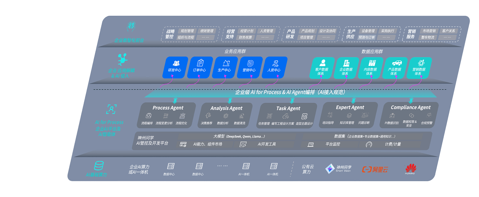 端到端的一站式AI工作空间深度融合了从企业战略规划到日常经营的全流程业务板块,,定向解决车企内部领域多、、、、部门多、、、链条长、、、场景碎片化等难题,,,,支持车企快速构建以AI为核心的生产力写作体系,,实现任务执行与AI能力的无缝集成与交互